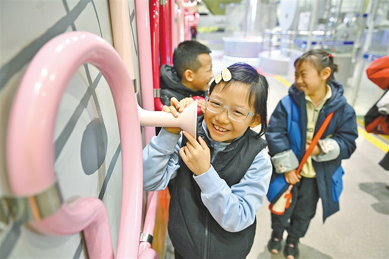 内蒙古科技馆里,充满了新奇与奥秘,孩子们被各种科技展品吸引着,“声音传导好有趣,我在这边可以听到你的声音!”闫子涵惊叹道。她和小伙伴们围在传导装置前,探索玩耍。家长张华感慨:“带孩子来科技馆,能激发他们对科学的兴趣,让他们看到世界的奇妙。”