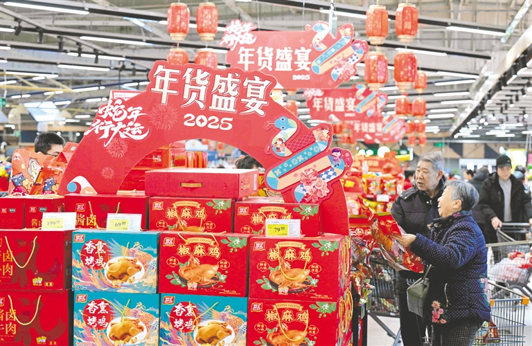 为保障充足丰富的年货供应,各地统筹肉菜储备投放,商务部门加强应急值守,商贸流通企业拓宽货源渠道、加强产销衔接,市民“菜篮子”“米袋子”得到全力守护。
