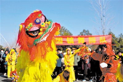 2月9日,河北省石家庄市元氏县群众表演舞狮。元宵节临近,各地举办丰富多彩的民俗活动,欢欢喜喜迎佳节。