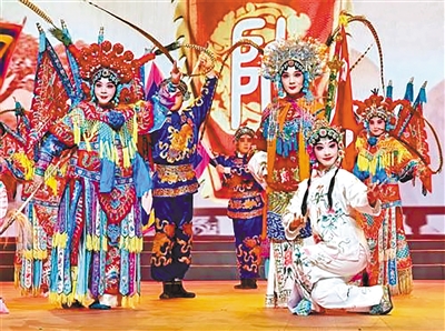在《繁花巳锦· 北疆春》的舞台上,“小众”地方戏婺剧与“国戏”京剧等无缝对接,形成了戏曲类别的有机融合。前者,一位年轻女演员用与京剧“桌子功”相对的“椅子功”,将折子戏片段《挂画》表演得炉火纯青,后者则以人们耳熟能详的大戏《穆桂英挂帅》的唱腔,赢得了观众的掌声。