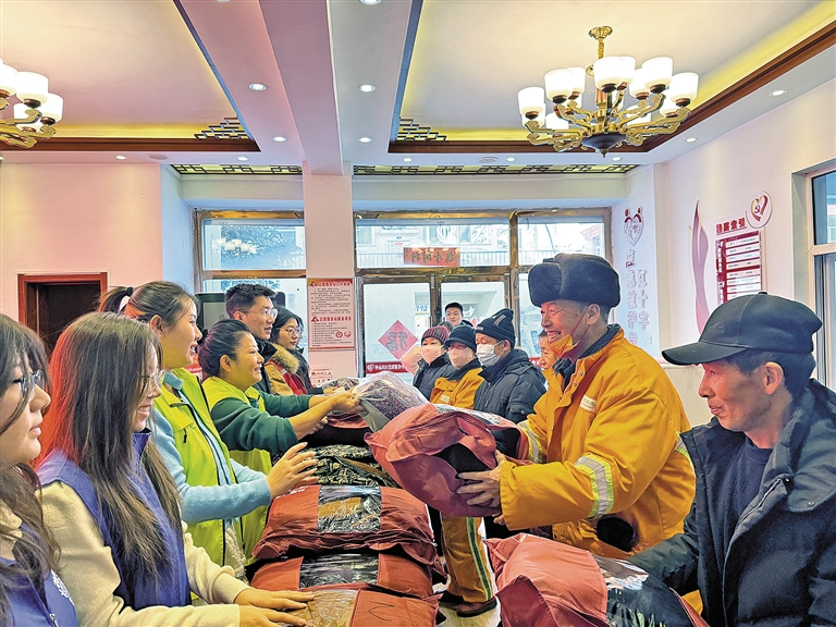近日,一场主题为“‘衣’份温暖 让爱传递”的爱心捐赠活动在乌兰察布市集宁区新体路街道外运社区举行。活动现场,新体路街道工作人员和志愿者为辖区困难居民送上棉衣棉裤与免费体检卡等物资,同时询问了他们的身体状况和生活情况,把温暖与关怀送到群众心坎上。段舒婷 摄