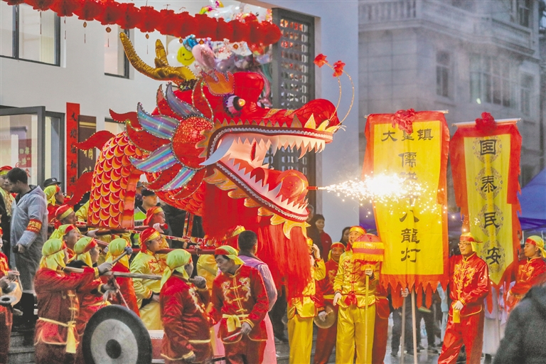 2月15日是农历正月十八,浙江省杭州市淳安县大墅镇儒洪村迎来了热闹的“赶十八”民俗市集。村民和游客一起观看唱大戏、跳竹马、舞龙灯、猜灯谜,共同感受这个传统民俗的魅力。“赶十八”始于明朝永乐年间,至今已有600多年的历史。儒洪村祖先将正月十五元宵节改至正月十八,很多亲友会赶在当天参加,故成为古村儒洪村特有的元宵文化。如今,这个活动已成为当地特色旅游项目。 新华社记者 徐昱 摄