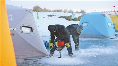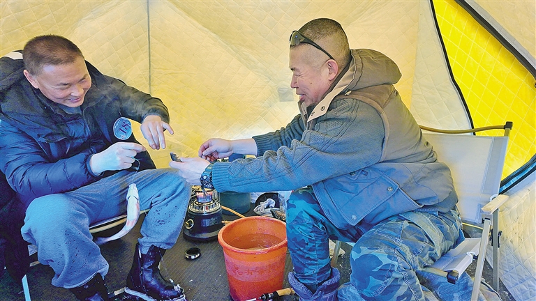 千里冰封的额尔古纳河上,彩色帐篷如繁花点缀洁白冰面,垂钓者手持电动冰钻,凿出一个个冰窟窿,接着熟练地架起钓竿,目光紧紧盯着鱼漂。冰钓爱好者王安清一边操作,一边分享经验:“冰钓可不简单,从挑选合适的用具、制作诱鱼的饵料,到找准上鱼的钓点,再到提鱼上岸后的保鲜,每个环节都藏着大学问。”每当鱼儿破水而出,他脸上便洋溢着收获的喜悦。俄罗斯钓手威驰萨福兴奋地说:“冰钓太有趣了,我特别享受这个过程,也期待能和中国钓手多多交流,一起提升技艺!”