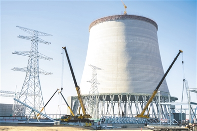 2月26日,在内蒙古能源集团金山三期项目施工现场,各类大型机械正在作业。该项目为蒙西网最大出力机组,投产后可实现年发电量100亿千瓦时,新增供热面积5000万平方米,可向呼和浩特市城区每小时输送1200吨工业蒸汽。本报记者 怀特乌勒斯 摄