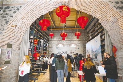 这是2月25日在第十届伊斯坦布尔出版联谊会上拍摄的中国文化展区。第十届伊斯坦布尔出版联谊会于25日至27日在土耳其伊斯坦布尔举行。此次活动中,中国被选为“焦点国家”。 新华社记者 刘磊 摄