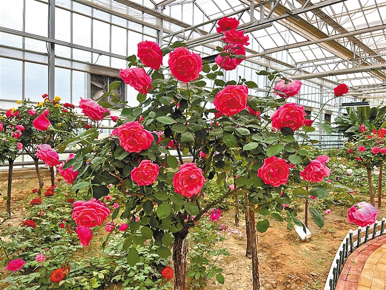 2024年4月,恩格贝生态示范区引进43个月季花品种,在温室内引种栽培成功。这些花卉主要用于种苗繁育、研学实践及文旅产品的制作。待繁育成功,将进行大范围推广种植,带动当地农牧民致富。