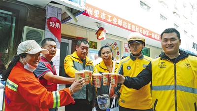 这个工会驿站2月13日正式运营。这里不仅是环卫工人的歇脚处,每日清晨还为300余名环卫工人供应免费早餐。