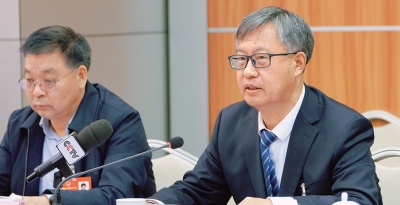 3月7日,住内蒙古全国政协委员金桩(右)建议,加大对西部地区地方高校的支持力度,改善办学条件,在一流学科和博士、硕士单位建设上予以倾斜。 本报记者 王鹏 摄