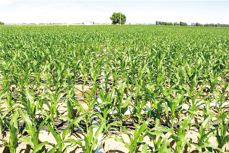 玉米属于浅根系作物,根系最长不会超过40厘米,技术人员通过调节,让水尽可能长时间停留在40厘米以上,提高水肥吸收利用率。同时,万亩田地间还布置了墒情、虫情、气象监测等设备,智能农业平台实现了检测的数字化、精准化,为科学种植管理提供方案和决策。