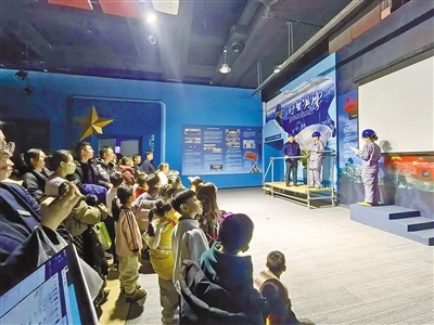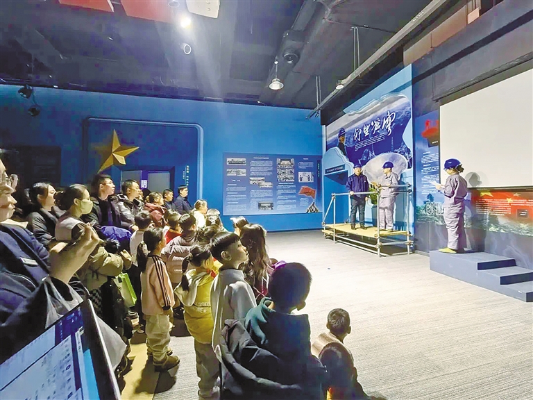 青少年们认真观看《自立自强自豪——中国共产党领导下的科技自主创新之路》展览剧。肖志腾 摄