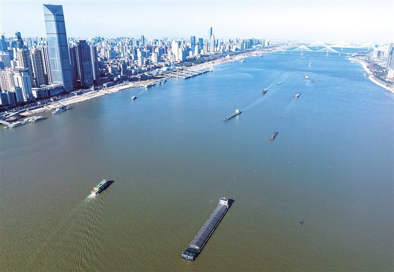 这是2024年1月23日拍摄的长江武汉江段水域(无人机照片)。 新华社记者 肖艺九 摄