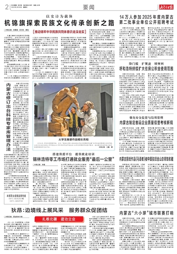 2024年9月,中国库布齐沙漠江格尔艺术节暨“中国三大史诗”保护传承展演在杭锦旗举办,来自全国各地的400余名民间艺人齐聚一堂。“他们将史诗说唱、呼麦艺术、托布秀尔弹奏等与民俗展示有机融合,营造出沉浸式的体验氛围,真正让人们‘听得见史诗、看得见文化、触得见脉搏’。”杭锦旗民委主任阿拉腾巴雅尔说。