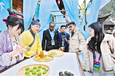 3月30日,游客在宣恩县椒园镇庆阳古街观看手工抹茶制作。当日,湖北省恩施土家族苗族自治州宣恩县梦回“茶马古道”春茶品鉴活动启幕,“宋风雅集”茶市、茶园服装秀、茶山非遗展演等系列活动,吸引众多游客参与其中品味春茶,沉浸式感受茶乡的魅力。 新华社发