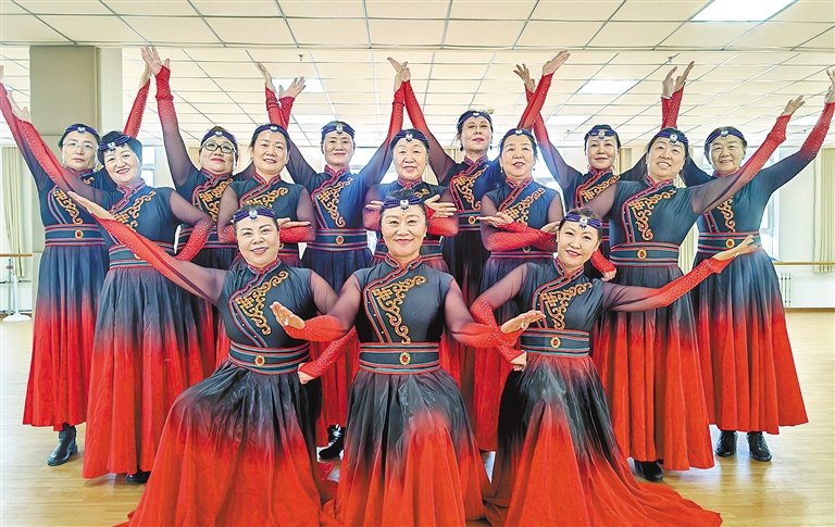 舞蹈教室传来欢快的音乐节奏,老年舞者们身姿轻盈、舞步娴熟,虽已不再青春年少,但岁月沉淀下来的自信与优雅在她们的举手投足间尽显无遗。正带着学员练习民族舞的吴建宏说:“跳舞不仅锻炼了身体,还让我结识了很多志同道合的朋友,我们还经常参加社区活动,把快乐传递给更多的人。”