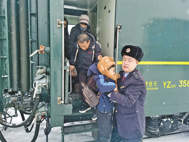 列车运行中每到站点,乘务员总是早早地站在车门口,小心翼翼地搀扶着老人下车,为年幼的孩子指引方向。