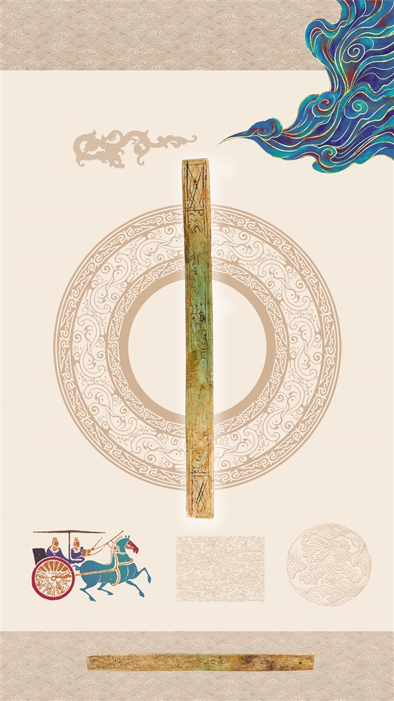 河套文化博物院文物保管研究部的高奇峰向记者介绍了汉代彩绘车马龙纹骨尺的出土过程。