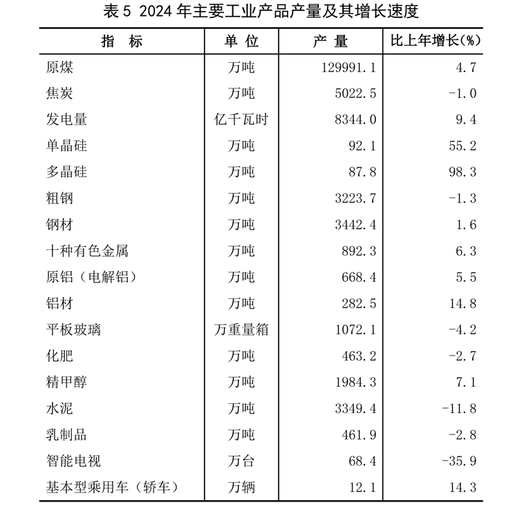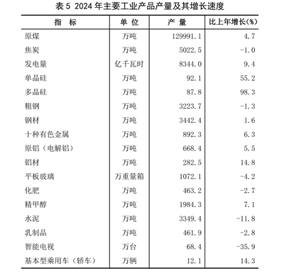 [12]主要工业产品产量中,除原煤产量、发电量为全口径数据,其余为规模以上工业企业口径。