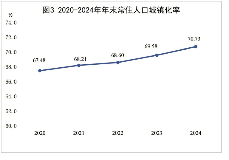 城乡融合和区域协调发展扎实推进。年末常住人口城镇化率为70.73%,比上年末提高1.15个百分点。分区域[11]看,全年东部地区生产总值7782.6亿元,比上年增长4.1%;中部地区生产总值16259.4亿元,增长6.7%;西部地区生产总值2251.5亿元,增长5.3%。