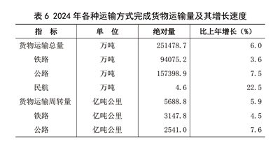 [15]货物运输总量及周转量包括铁路、公路、民航三种运输方式完成量,2024年增速按可比口径计算。