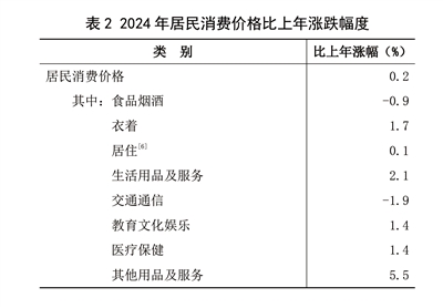 全年居民消费价格比上年上涨0.2%。全年工业生产者出厂价格比上年下降3.4%,工业生产者购进价格比上年下降2.9%。