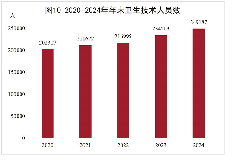 年末全区共有医疗卫生机构26740个。其中,医院861个;基层医疗卫生机构25480个,其中乡镇卫生院1217个,社区卫生服务中心(站)1321个,门诊部1190个,村卫生室12772个;专业公共卫生机构323个,其中疾病预防控制中心118个。卫生技术人员249187人,其中执业医师和执业助理医师100570人,注册护士106855人。医疗卫生机构床位173628张。其中,医院139133张,乡镇卫生院21581张。