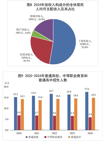 全年全体居民人均可支配收入40077元,比上年增长5.1%。按常住地分,城镇居民人均可支配收入50888元,比上年增长4.5%。从主要收入构成看,工资性收入31384元,增长5.5%;经营净收入9542元,增长2.9%;财产净收入2583元,下降2.1%;转移净收入7379元,增长5.3%。农村牧区居民人均可支配收入22543元,增长6.2%。从主要收入构成看,工资性收入4407元,增长7.9%;经营净收入12161元,增长4.8%;财产净收入664元,增长14.6%;转移净收入5311元,增长7.3%。