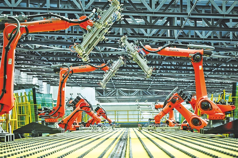 4月2日,位于鄂尔多斯市准格尔旗的内蒙古玉晶科技有限公司多条自动化玻璃生产线正在全力生产赶订单。该公司投资100亿元,分四期建设5280万重量箱光伏面板及优质特种深加工玻璃生产线,主要生产光伏背板面板及高铁、汽车玻璃等特种玻璃,目前已完成投资27.5亿元。 本报记者 王晓博 摄
