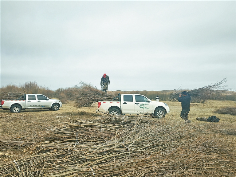 这几天,在位于锡林郭勒盟正蓝旗境内的浑善达克沙地中,牧民们正忙着开展黄柳平茬作业。科学平茬有助于黄柳的再生长,强化其对浑善达克沙地生态的防风固沙和水土保持功能。平茬后的黄柳条还是很好的生物活沙障,成为治沙“利器”。2025年,锡林郭勒盟计划完成沙地治理任务566万亩,奋力打赢浑善达克沙地歼灭战。