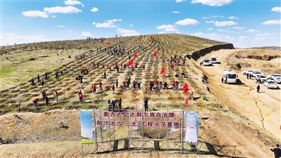 作为“三北”工程三大标志性战役的主战场,2024年,内蒙古完成“三北”工程建设任务2442万亩,占全国45.8%;完成防沙治沙1954万亩,居全国首位;防沙治沙和风电光伏一体化工程治理沙化土地238万亩,以日均治沙6万亩的骄人战绩领跑全国。2025年,内蒙古各地提前谋划、抢先抓早、接续奋战,推动防沙治沙往深处挺进,全年要完成防沙治沙2000万亩以上,防沙治沙和风电光伏一体化工程治沙140万亩以上。