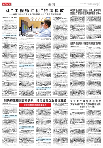 人才是企业发展的第一资源。劳动用工更加规范,职工工资合理增长,劳动条件不断改善,将充分调动劳动者的积极性、主动性,支撑企业焕发新活力、开辟新天地。