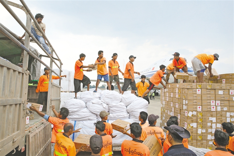 中国政府援缅第五批紧急 人道主义地震救灾物资抵达缅甸