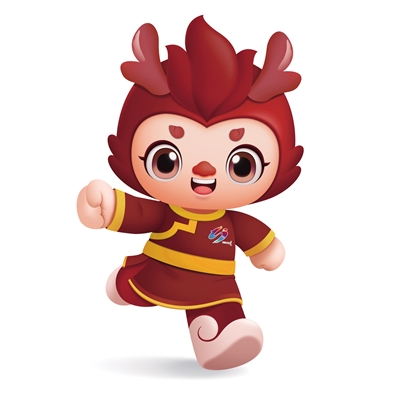 吉祥物“赤龙儿”,寓意鲜明、简洁响亮,又有举办地“赤峰”的内涵。吉祥物活泼可爱、聪慧灵动,身着以赭红色(赤峰红山山体颜色)和黄色为整体色彩的民族服饰,既凸显“红山文化”特色,又体现运动会激情热烈、阳光活力的氛围;脸上洋溢着自豪的笑容,以奔跑的姿态欢迎各地来宾莅临赤峰,充分展现内蒙古各族人民勤劳朴实、热情好客的优良品质。