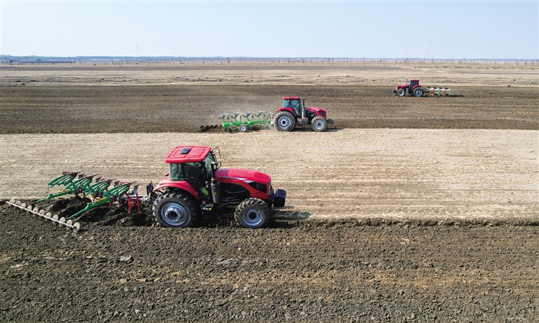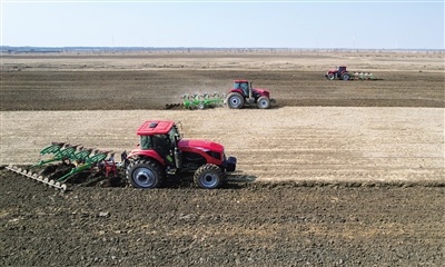 4月19日,通辽市科左后旗吉尔嘎朗镇毛仁塔拉嘎查种植户正在春耕。据了解,科左后旗可投入春耕生产的拖拉机34744台、播种机15174台、耕整地机械11075台。截至目前,全区农资到位率同比持平略快,价格稳中有降,粮食作物已播种86.2万亩,预计4月下旬进入春播高峰期。本报记者 孟和朝鲁 摄