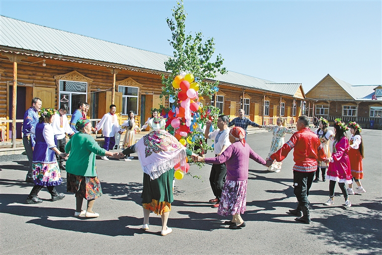 在恩和俄罗斯族民族乡,游客们喝着格瓦斯,吃着列巴,听着俄罗斯族民歌,住着木刻楞,感受到了浓厚的俄罗斯族文化氛围。