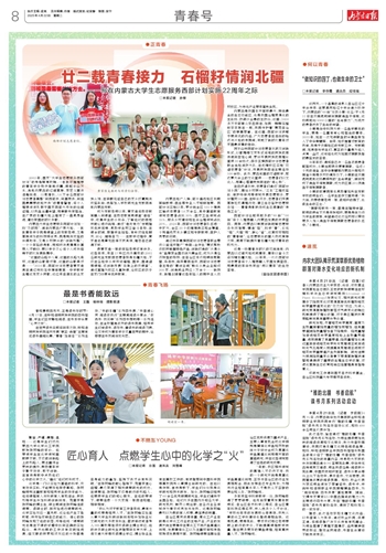 内蒙古大学生志愿服务西部计划如一场“及时雨”,润泽内蒙古广袤大地。一批批青年学子既是课堂上的支教老师,又是草原深处的科技特派员;既是脱贫攻坚的参谋助手,又是乡村振兴的“创新引擎”。一个个年轻的身影,用知识与激情填补基层人才缺口,更以赤子之心将个人成长熔铸于时代发展脉搏中。