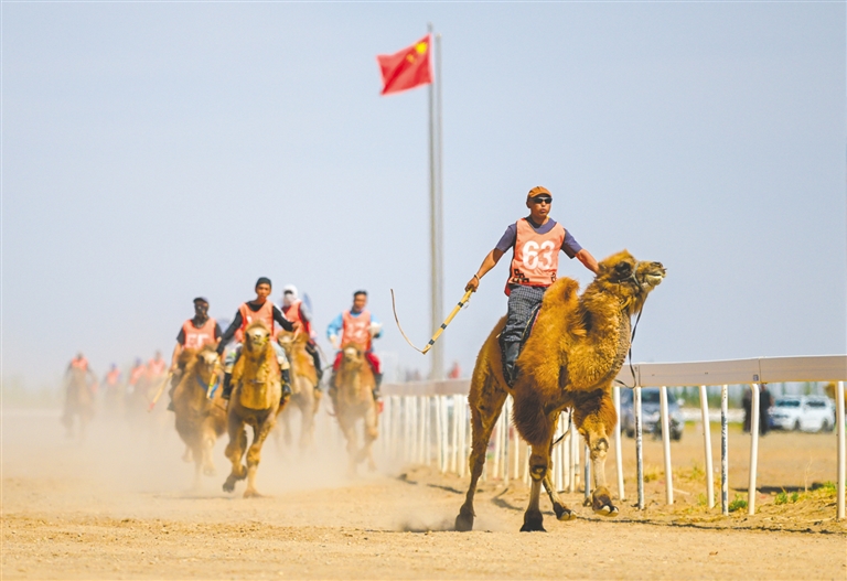 本报4月27日讯  (记者  高慧  康丽娜)4月27日上午9时,在《苍天般的阿拉善》的歌声中,由内蒙古阿拉善盟额济纳旗委、政府打造的2025年“苍天千峰驼羔”文化旅游系列活动在达来呼布镇赛驼场正式拉开帷幕。来自全国各地的游客与当地群众齐聚在赛驼场,共同见证这场融合民族文化与生态旅游的骆驼主题盛会。
