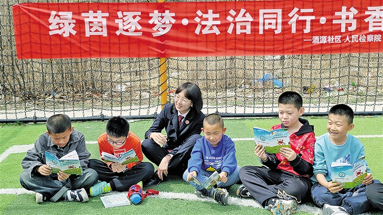 近日,乌兰察布市凉城县人民检察院“北疆蒙芽·晨曦”未检团队联合凉城县共青团、岱海红社会工作服务中心和酒源社区,共同举办了以“绿茵逐梦·法治同行·书香润心”为主题的足球锻炼与运动习惯养成活动。活动以足球运动为载体,将法治教育、习惯培养与家庭教育有机融合,增强法治观念和规则意识。图为检察人员为孩子们讲解未成年人保护相关法律知识。本报记者 郝佳丽 摄