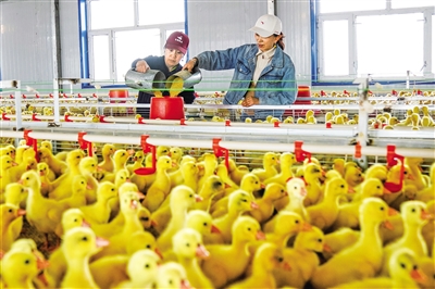 4月28日,在呼伦贝尔市阿荣旗得力其尔鄂温克族乡全顺大鹅养殖专业合作社内,村民正给鹅雏添加饲料。该合作社建有4栋标准化育雏室、2栋孵化室,并配备50台孵化箱与10台出雏器,年出栏鹅雏预计达100万只。近年来,阿荣旗深耕大鹅养殖产业,不断拓宽农民增收致富渠道,助力乡村振兴。本报记者 王晓博 摄