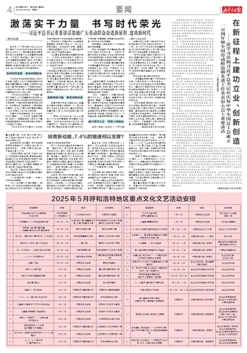序号活动名称时间地点主办单位20贝多芬与舒伯特钢琴三重奏音乐会5月30日内蒙古乌兰恰特武汉浩洋文化传播有限公司21儿童剧《嘻嘻西游记》5月31日内蒙古乌兰恰特江苏省木偶剧团222025年文化馆服务宣传周主场系列活动5月16日—25日内蒙古自治区文化馆自治区文化和旅游厅23会古通今——南北朝石刻精选五十品题跋临创书法作品巡展5月1日—5日内蒙古美术馆10、11展厅郑州大学24刀木镌真——阿太作品展5月1日—11日内蒙古美术馆7号展厅青海玉树州委宣传部、青海省美术家协会25第二届内蒙古中国画学会作品展5月1日—11日内蒙古美术馆8号展厅内蒙古中国画学会26“北疆文韵 版权绽彩”——内蒙古优质文艺版权资源转化创享展5月1日—5日内蒙古美术馆9号展厅自治区版权局、自治区文联27“共享芬芳·文化助残”无障碍电影线下展播活动5月1日—5日自治区图书馆一楼无障碍电影放映厅自治区图书馆28五一劳动节“致敬平凡的伟大”展映活动《逆行人生》《中国机长》5月1日—2日自治区图书馆音乐图书馆自治区图书馆29民族政策宣传展映活动《海的尽头是草原》《狼图腾》5月9日、5月23日自治区图书馆音乐图书馆自治区图书馆30六一儿童节“童梦奇缘”展映活动5月30日—31日自治区图书馆音乐图书馆自治区图书馆31书香内蒙古系列讲座5月10日、17日、24日自治区图书馆多功能报告厅自治区图书馆32“伟大精神引领伟大事业”中国共产党人精神谱系主题展览长期陈列内蒙古展览馆二楼东展厅自治区党委宣传部、自治区文化和旅游厅、内蒙古展览馆33“感党恩、听党话、跟党走”主题展长期陈列内蒙古展览馆二楼西展厅自治区党委宣传部、自治区党委主题教育领导小组办公室、自治区文化和旅游厅、内蒙古展览馆34牢记嘱托 感恩奋进——办好两件大事 奋力书写中国式现代化内蒙古新篇章展览长期陈列内蒙古展览馆一楼展厅自治区党委和人民政府、自治区党委宣传部、自治区发展和改革委员会、自治区文化和旅游厅35绿色长城 生态奇迹——内蒙古防沙治沙和“三北”工程攻坚战主题展长期陈列内蒙古展览馆一楼西展厅自治区党委宣传部、自治区林业和草原局