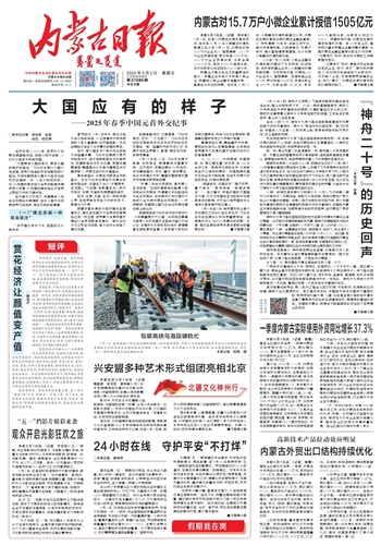 这次神舟二十号飞行任务,内蒙古这片土地第一次把出生在巴彦淖尔、在阴山脚下长大的航天员王杰送上了太空,期待王杰和伙伴们精彩的太空表现,也期待他们半年后返航时,带回更多太空实验送给人类的惊喜礼物。