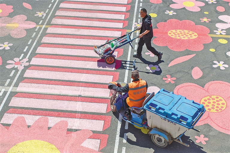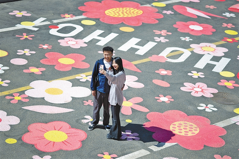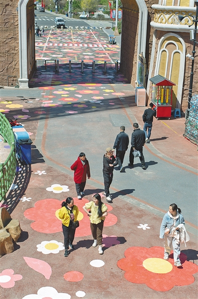 漫步在呼和浩特市恼包村游乐区,路面涂鸦花路宛如一条绚丽的彩带蜿蜒其中。色彩斑斓的花朵相互交织,仿佛在微风中摇曳生姿,勾勒出一幅美轮美奂的休闲画卷。