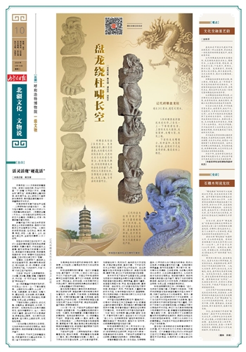 呼和浩特博物院工作人员刘利平介绍,“雕龙缠柱”的形制至少在李诫编著《营造法式》的时候就已经很成熟,并且也成为具有一定普遍性的传统装饰。万部华严经塔建于宋辽时期,砖雕盘龙柱就是这一时期的精品。
