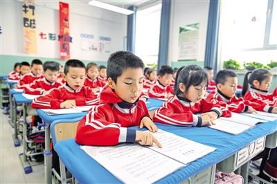 5月19日,呼和浩特市赛罕区南门外小学的学生诵读《笠翁对韵》。近年来,该校秉承“以文化人,以诵润心”理念,构建经典诵读特色课程体系,通过“朝读经典+午诵诗词”阶梯式诵读模式,打造沉浸式传统文化体验,实现“诵经典、扬正气、润心田”的育人目标,激发学生们学习使用国家通用语言文字的热情。本报记者 王磊 摄