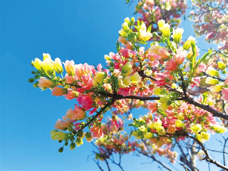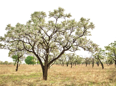 文冠果又名文官果、长寿果,它适应性强,既具备防沙固沙、保持水土的生态价值,也具有非常高的食用、药用和观赏价值。文冠花花期可持续20多天,依次呈现白、绿、绯、紫4色。这片悦人眼眸的文冠果花海,不仅展现了自然生态之美,更成为当地经济发展、生态保护与文化传承的重要载体,为北方干旱地区的绿色转型提供了示范样本。