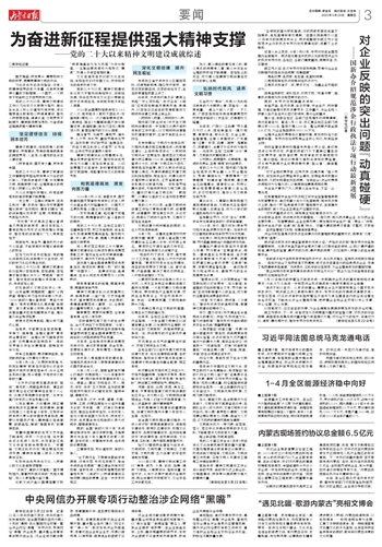 马克龙表示,法中、欧中关系至关重要,具有世界意义。无论国际形势如何变化,法方高度重视对华关系、坚定恪守一个中国原则的立场不会有任何改变。愿同中方加强经贸投资及各领域务实合作,保持双边关系良好发展势头,推动法中关系取得更大发展。■下转第3版