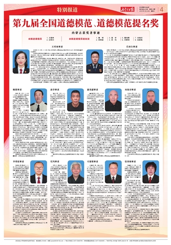刘海洋荣获内蒙古自治区道德模范等称号,荣登“中国好人榜”。