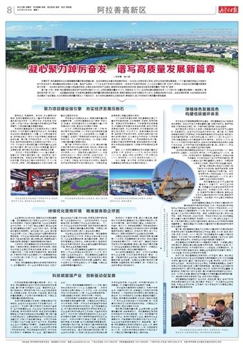 据了解,今年一季度,阿拉善高新区固定资产投资同比增长16.4%,占阿拉善盟总量的41.6%,贡献率达32.5%,拉动阿拉善全盟固定投资7.2个百分点,总量位居全盟第一、增速第三,圆满实现开局“开门红”……这些瞩目的数据,不仅是阿拉善高新区高质量发展成果的直观体现,更是该高新区全体干部群众齐心协力、拼搏奋进的有力见证。这些成绩的取得,为全年目标任务的完成奠定了坚实基础,也为该高新区高质量发展注入了强劲动力。如今的阿拉善高新区正踔厉奋发、勇毅前行,奋力书写新时代高质量发展新篇章。