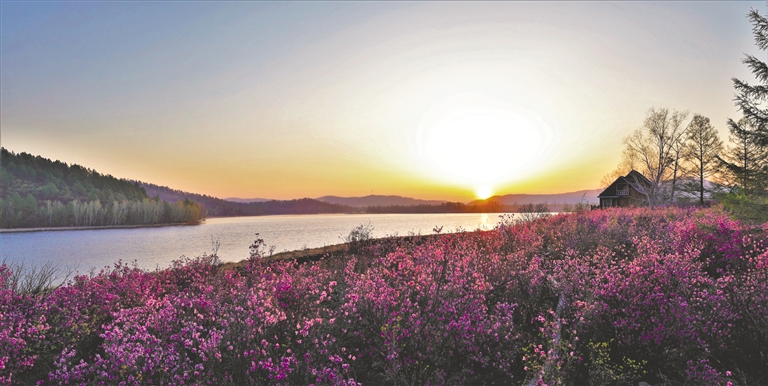 (压题图:达尔滨湖日出。本报记者 李新军 摄)