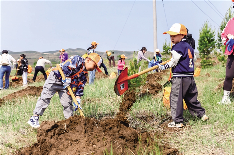 在植树过程中,参与者挥锹培土、扶苗浇水,新栽树苗迎风挺立,化身守护北疆生态防线的绿色卫士。多位市民表示,活动创新性地将环保实践与亲子教育相结合,“以植树作为儿童节礼物”的理念极具意义,为家庭提供了参与自治区生态文明建设的公益新平台。