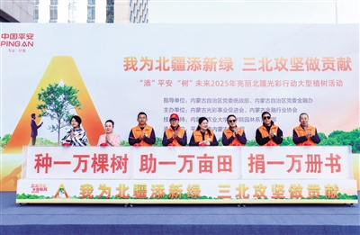 活动现场以“添平安 树未来”为口号,同步启动“光彩平安公益节”系列活动。根据工作安排,内蒙古光彩事业促进会与平安人寿内蒙古分公司将聚焦“绿色生态、乡村振兴、教育公益”三大领域,构建“三个一万”公益矩阵:一是“种一万棵树”——共建北疆生态防护林;二是“助一万亩田”——激活乡村振兴新动能;三是“捐赠一万册图书”——用知识点亮乡村孩子的人生梦想,以“金融为民”为宗旨,打造自治区公益文化新标杆。